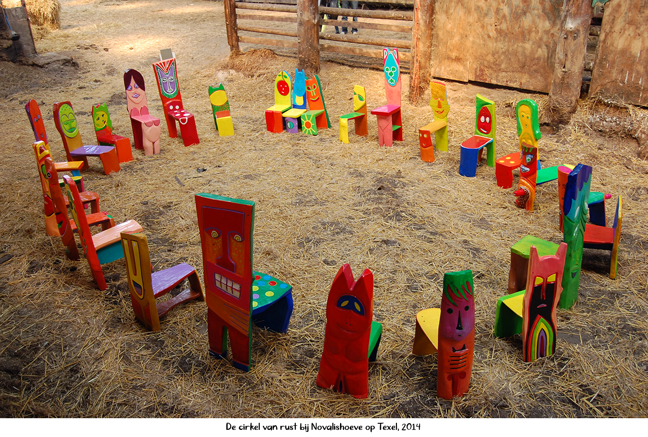 De ‘zitgeesten’ zijn eigenlijk niet bedoeld om op te zitten, ook al lijken het kleine stoeltjes. Van de Brake heeft ze gemaakt voor zijn eigen rust, om de geesten die in zijn brein bleven rondspoken te ‘dwingen’ tot rust. In die zin hebben ze hun werk gedaan.