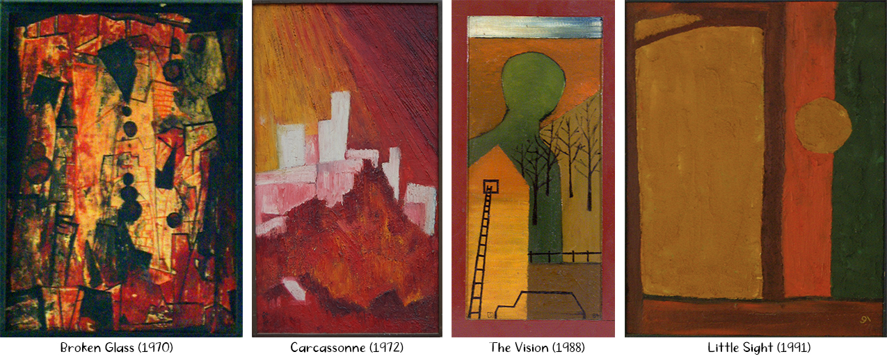 He started painting at a young age, preferably on wood. Initially, the 'paintworks' are sober in color and composition.