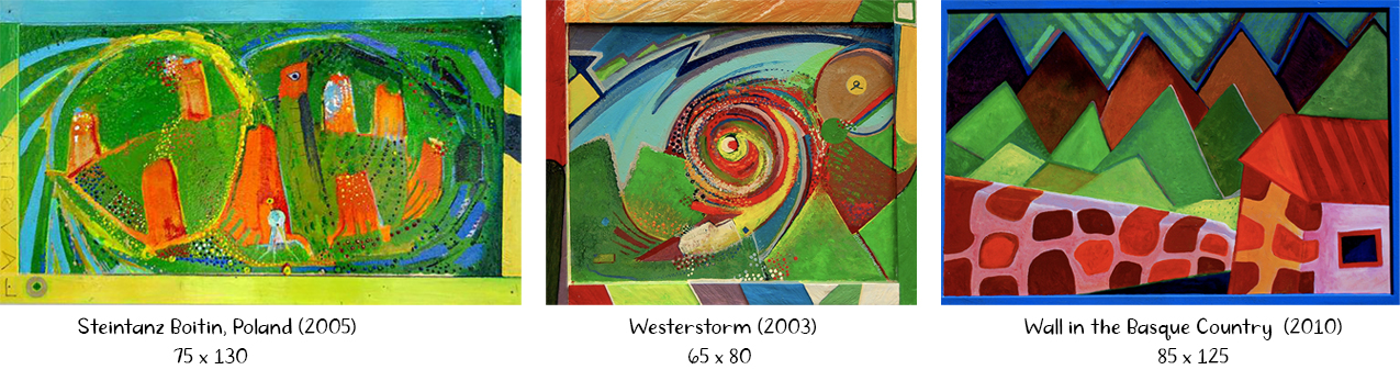 He never had an education in the arts. He is completely self-taught. His work is very layered. It reflects the landscape, his many travels, is full of moods and emotions and contains countless references to current and past events.